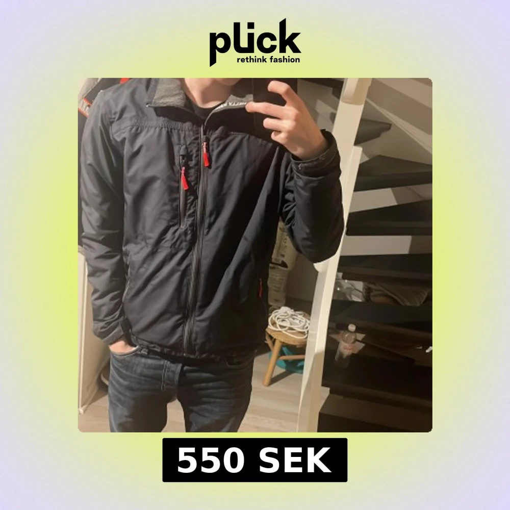 Säljer en svart vindjacka från Helly Hansen med röda dragkedjor. Jackan har en hög krage och långa ärmar, perfekt för blåsiga dagar. Den är stilren och funktionell med flera praktiska fickor.xs men passar S