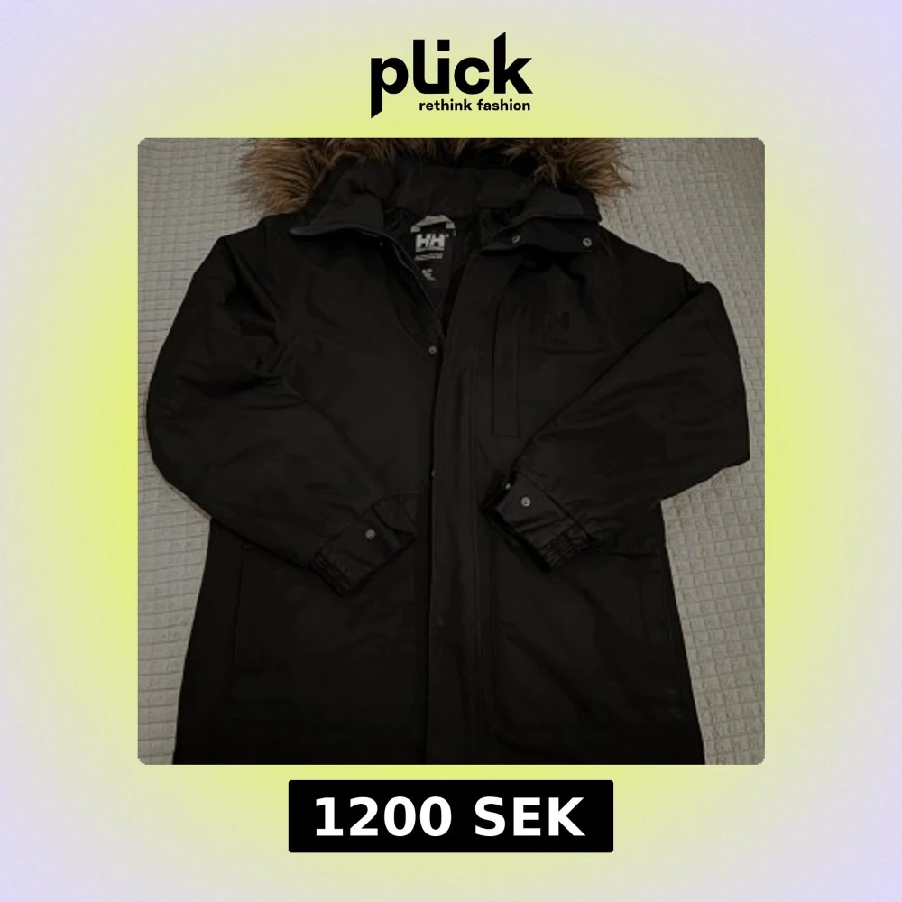 Svart parkajacka från Helly Hansen med huva, dragkedja och tryckknappar. Jackan är tillverkad i polyester och har flera praktiska fickor. Den har en avtagbar päls med diskret HH-logga på bröstet.