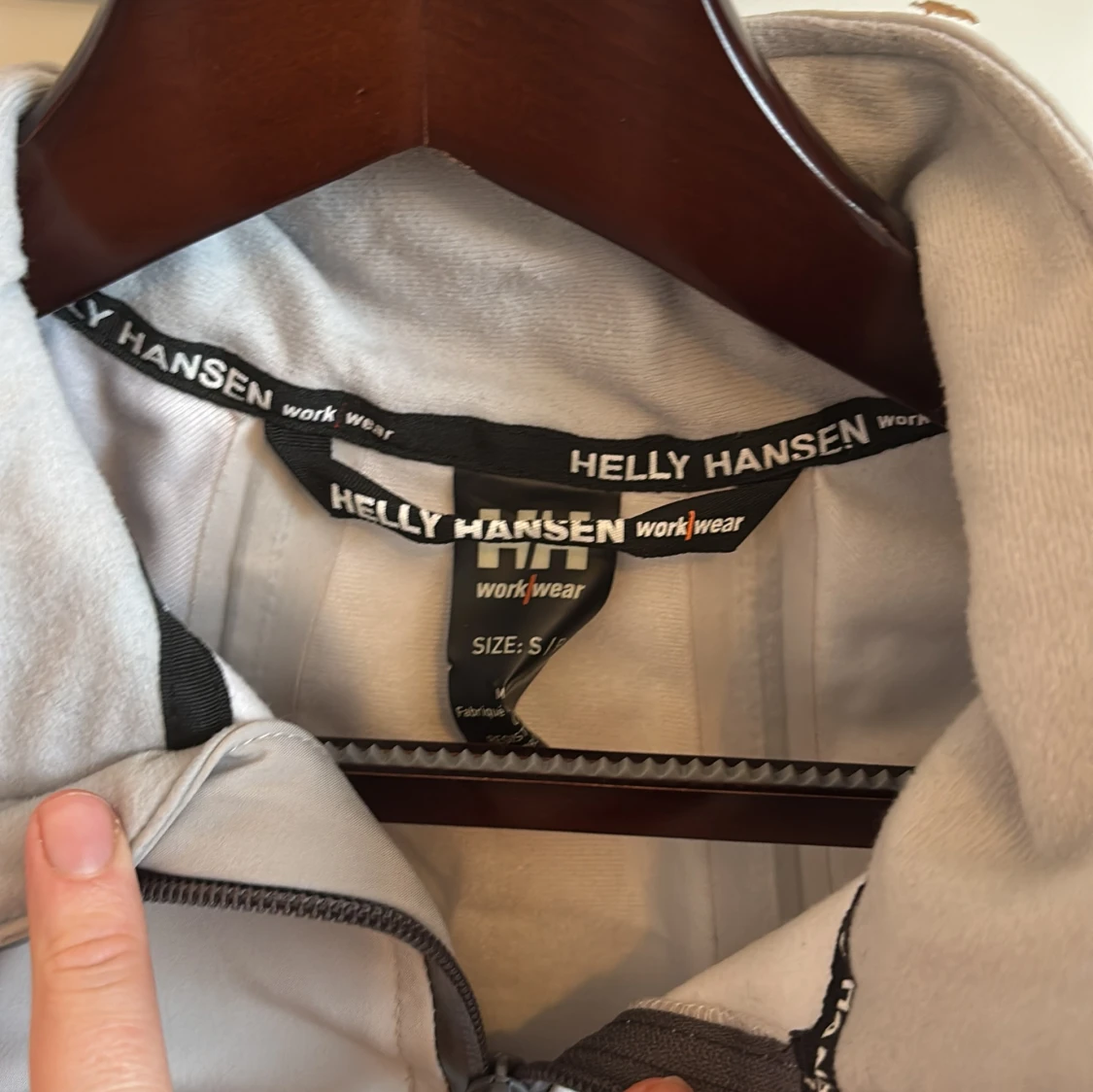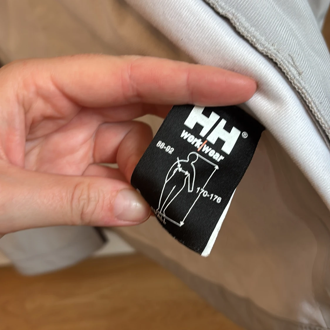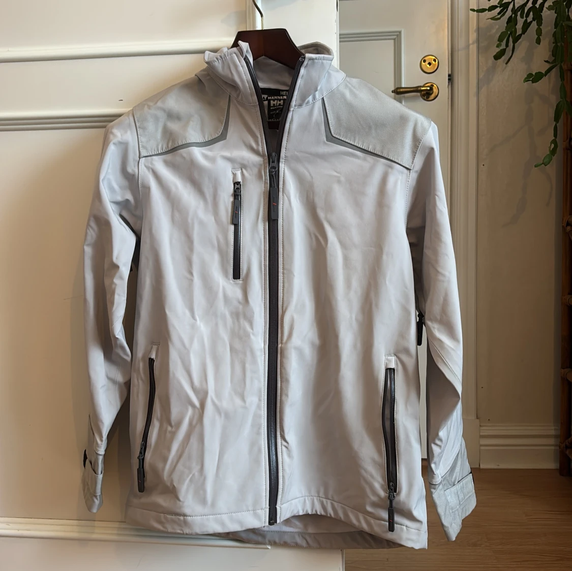 Säljer en ljusgrå Helly Hansen Workwear-jacka. Jackan har huva, flera dragkedjeförsedda fickor och justerbara ärmslut. Perfekt för blåsiga dagar och snygg till streetwear. Materialet känns slitstarkt och jackan har en clean look med svarta detaljer. Är osäker på om modellen är till för kvinnor eller män , så valde unisex