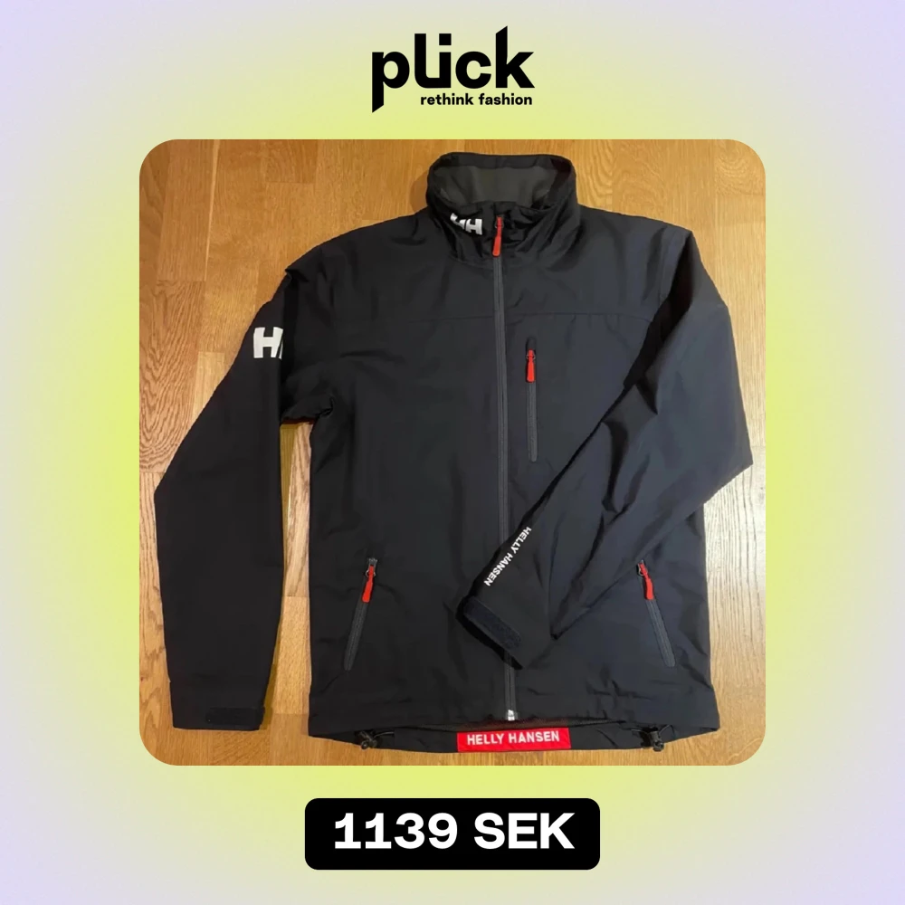 Säljer en marinblå Helly Hansen jacka i mycket bra skick. Den har en normal passform och är perfekt för höst och vår. Jackan har långa ärmar och praktiska dragkedjor i rött. Materialet är syntetiskt och håller dig varm och torr. Perfekt för utomhusaktiviteter!