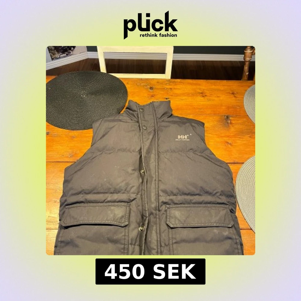 Säljer en svart dunväst från Helly Hansen. Västen har en hög krage och stängs med både dragkedja och knappar. Två stora fickor framtill ger extra förvaring. Perfekt för kyligare dagar. Sitter lite för liten på mig som är 180cm lång och väger 70kg.