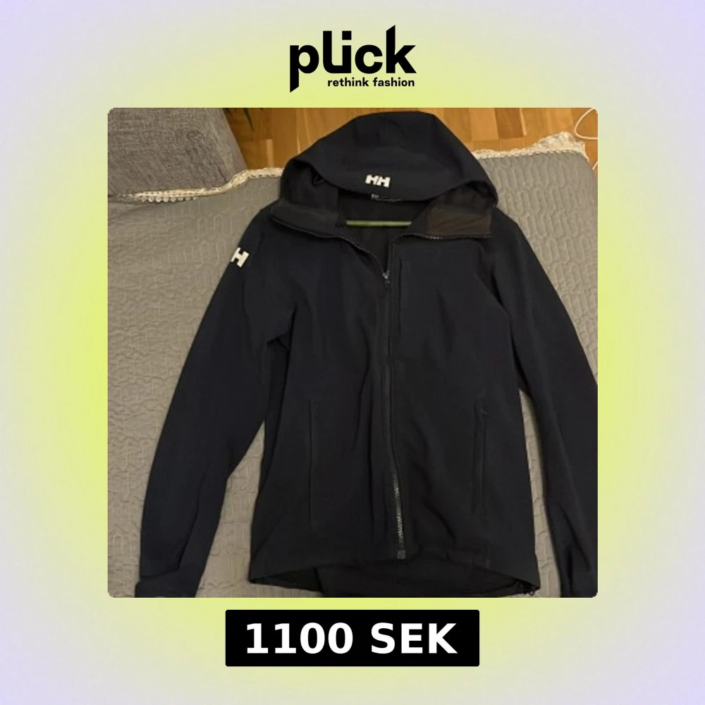 Mörkblå jacka från Helly Hansen med huva och dragkedja framtill. Jackan har HH-logga på huvan och ärmen, samt två sidofickor med dragkedja. Materialet är syntet och jackan är långärmad med normal passform. Perfekt för blåsiga dagar. Storleken är S och jackan är i 8,5/10 skick