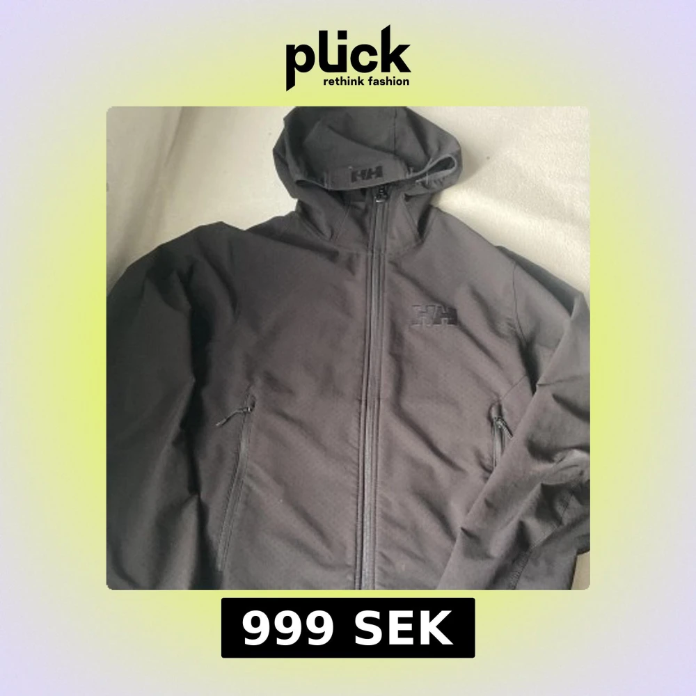 Säljer en svart jacka från Helly Hansen. Den har en enkel och stilren design med en liten logga på bröstet. Jackan har en huva, dragkedja och fickor. Materialet är lätt och andas bra, perfekt för vardag och utomhusaktiviteter.