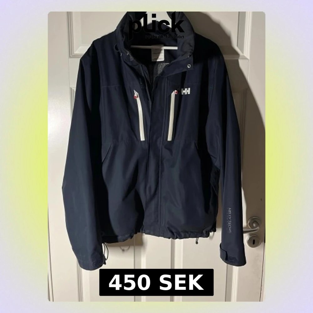 Säljer en marinblå vindjacka från Helly Hansen i storlek L men passar även M användare. Jackan har två vita dragkedjor framtill, hög krage och justerbar nederkant. Materialet är slitstark polyester. Vid fler frågor hör av er!