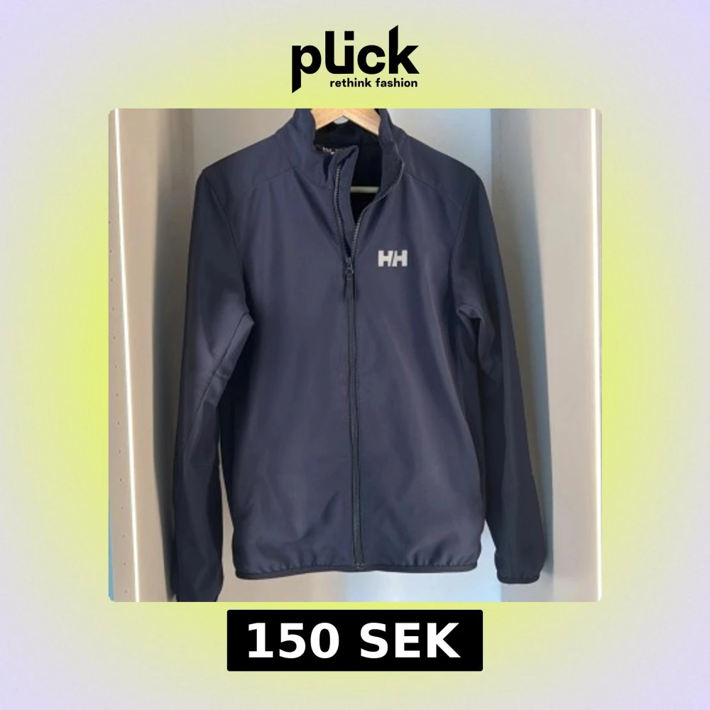 Mörkblå softshelljacka från Helly Hansen med dragkedja framtill och hög krage. Jackan har lång ärm och HH-logga på bröstet. Perfekt för blåsiga dagar och enkel att matcha med olika outfits. Storlek 164 men sitter som en xs mått på jackan är 64 i längd och 60 cm i armen