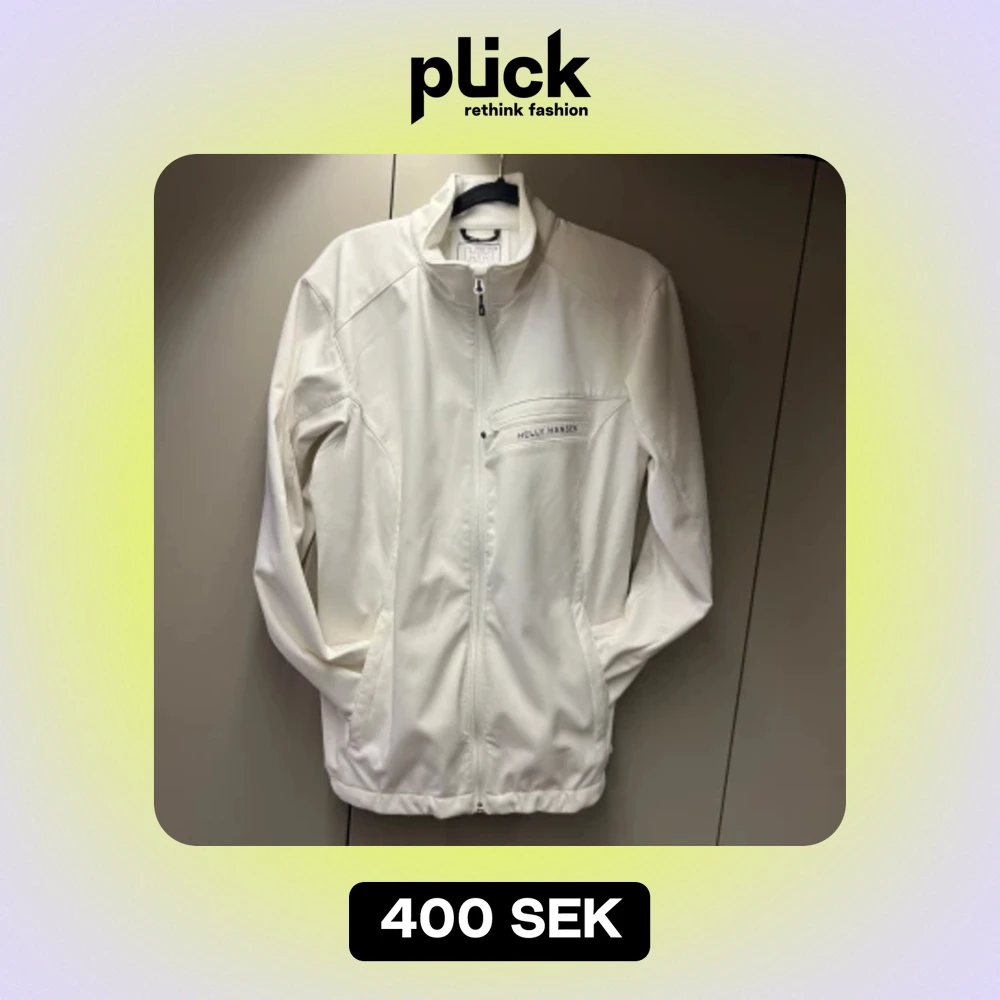 Tunn fin vit jacka från Helly Hansens damkollektion. Normal i storleken, även lite stretch i tyget. Bra längd på armarna, även för mig som är 175cm. Fint skick, endast en lite fläck på armen som säkert går att ta bort men jag har inte testat.