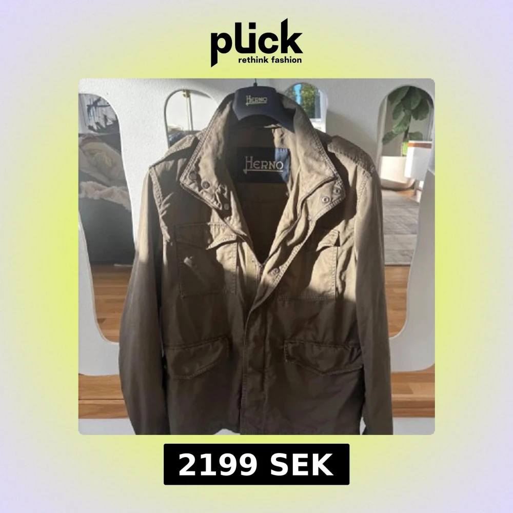 Tja säljer denna sjukt snygga field jacket från Herno. Den är i den eftertraktade militär gröna färgen och i super fint skick! Storlek 50 som motsvarar M/L. Nypris ca 10000kr. Hör av er vid frågor eller funderingar:)