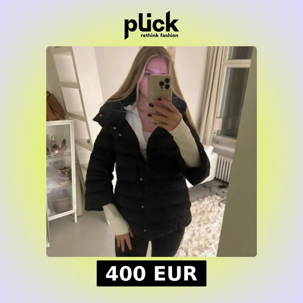 Säljer en svart herno jacka med hög krage och snygga guldfärgade knappar. Jackan har en loose passform och är perfekt för kalla dagar. Den är långärmad och har ett stilrent, enkelt utseende som funkar till många olika outfits. Storlek är IT 42/EU 38