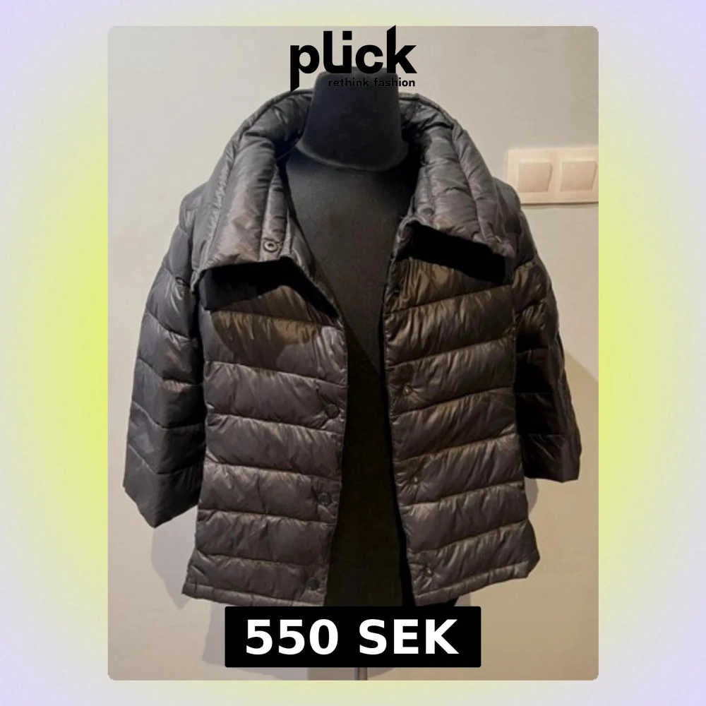 Snygg dunjacka med bred krage och trekvartsärmar, bra kvalite och fint skick. Likar herno. Jackan har quiltad design, knappar framtill och äkta dunfyllning. Stl 4 som motsvarar M. Svart/väldigt mörk grå 💕Skriv om du har frågor, kolla min profil för annat fint