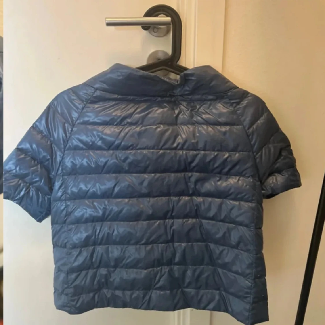Säljer en blå, trekvartsärmad pufferjacka från Herno. Jackan har inga defekter, endast på loggan då den har tvättats! Kom privat för diskussion av pris!!❤️
