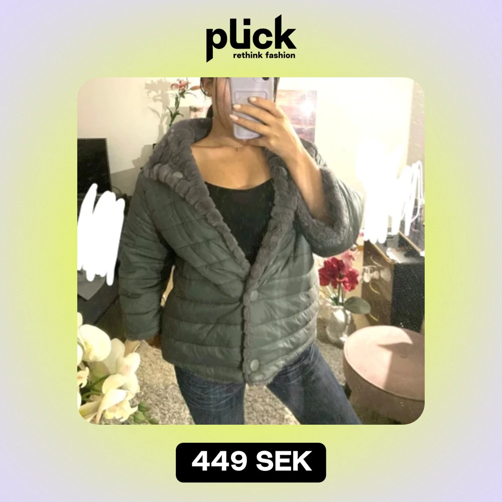 Vändbar hernoliknande trekvartsärmad pufferjacka i strl M🥰 Super skön (!) och lite tjockare vilket passar super bra nu när det börjar bli kallare☺️🍂 Lite för stor för mig som brukar använda XS men vill nästan ändå ha kvar den då den är så skön🙈