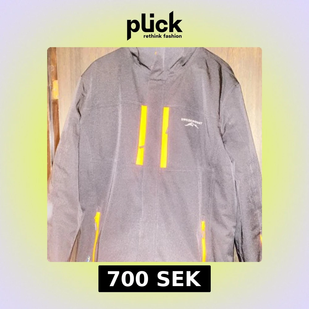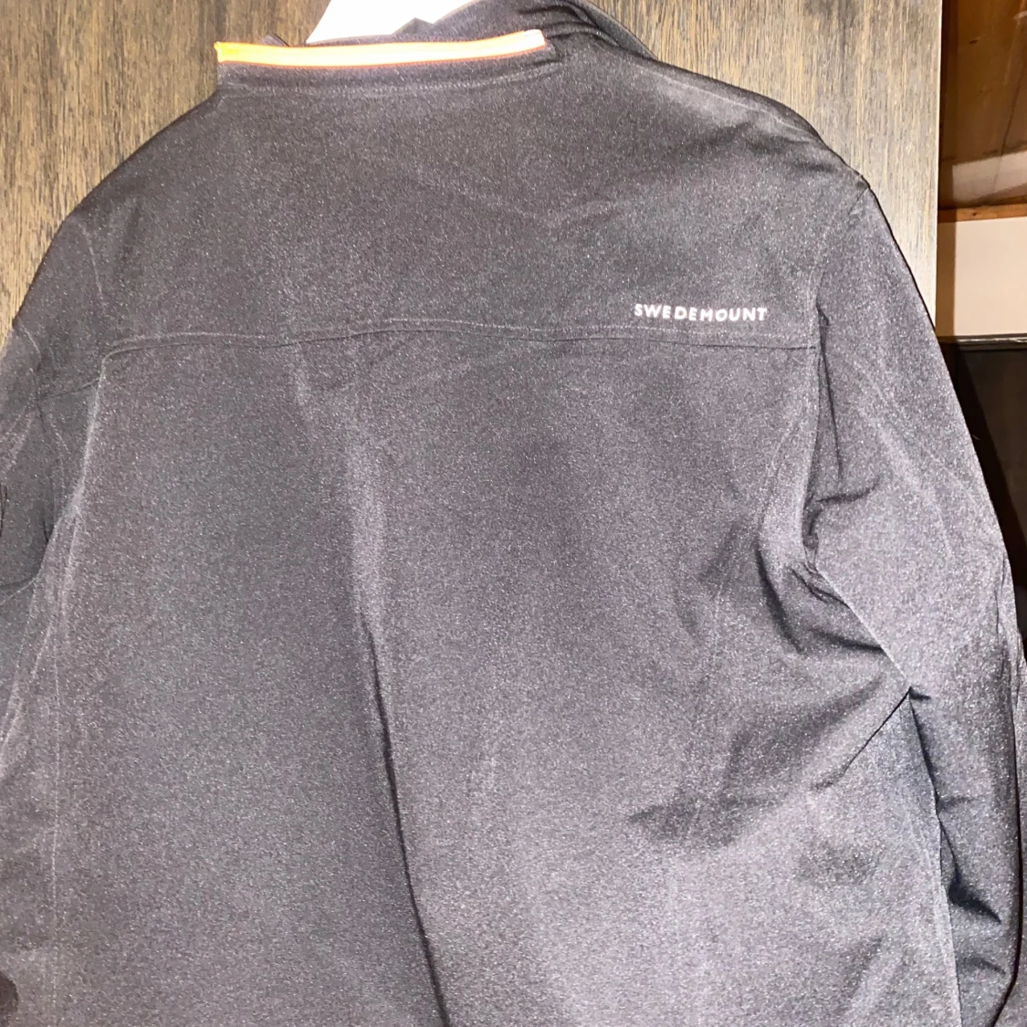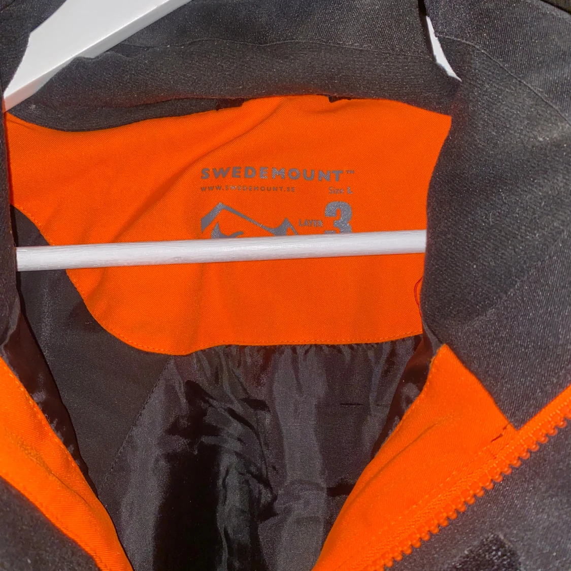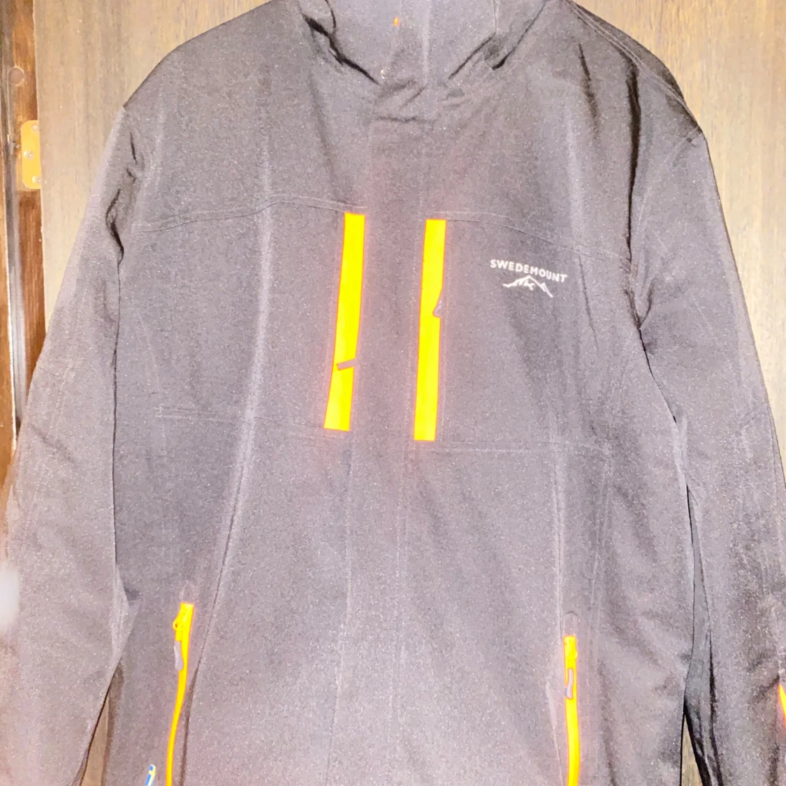Säljer en svart jacka från Swedemount med orange detaljer och dragkedjor. Jackan har en hög krage och flera praktiska fickor. Perfekt för utomhusaktiviteter. Aldrig använd