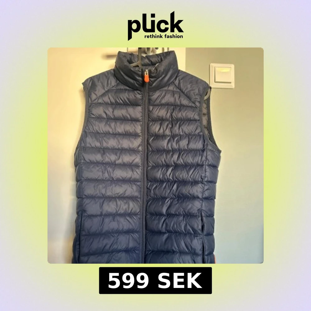 Säljer en blå dunväst från Save the Duck. Västen är sparsamt använd och har inga defekter och är i storlek S. Hör gärna av er vid frågor och funderingar🤩