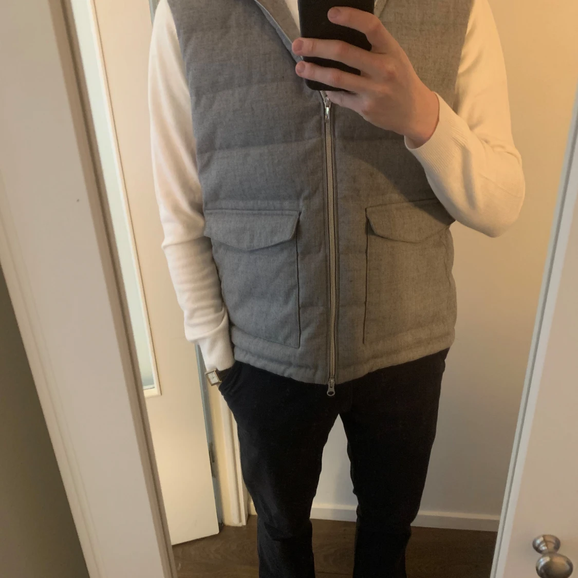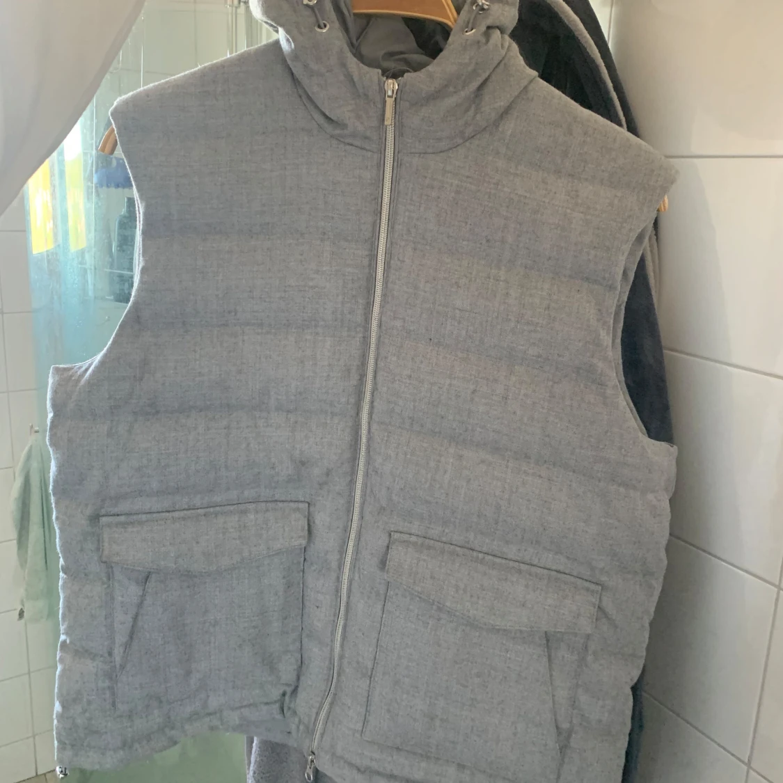 Säljer en grå dunväst från Stenströms med huva och dragkedja framtill. Storlek XL. Väldigt fint skick. Tar bud!