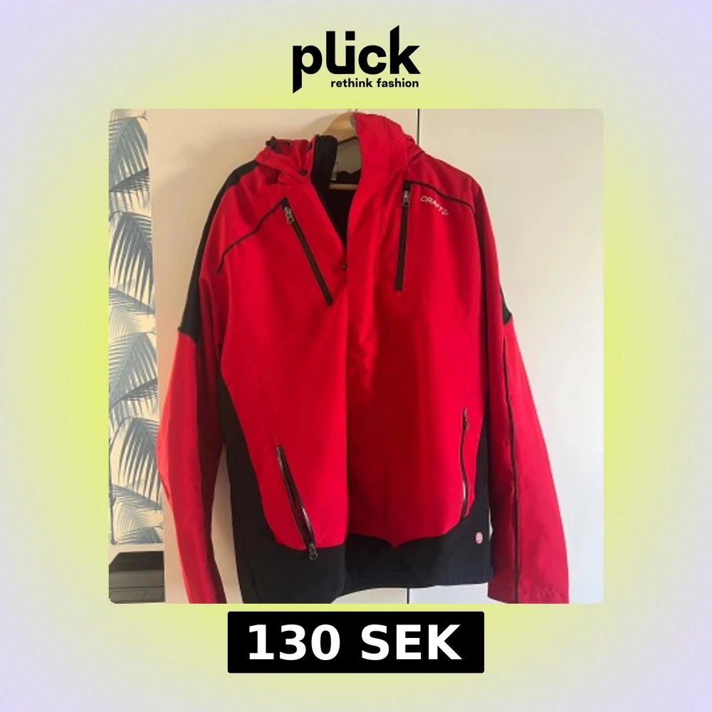 Säljer en snygg röd och svart jacka från Craft. Jackan har flera praktiska dragkedjor och en justerbar huva. Perfekt för utomhusaktiviteter med sin sportiga design och funktionella detaljer.