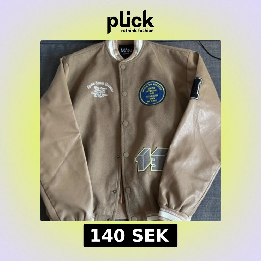 Snygg beige bomberjacka från BoohooMAN med coola patches och broderade detaljer. Jackan har kontrasterande ärmar i skinnimitation, tryckknappar och ribbade muddar. Perfekt för dig som vill sticka ut med en streetinspirerad look.