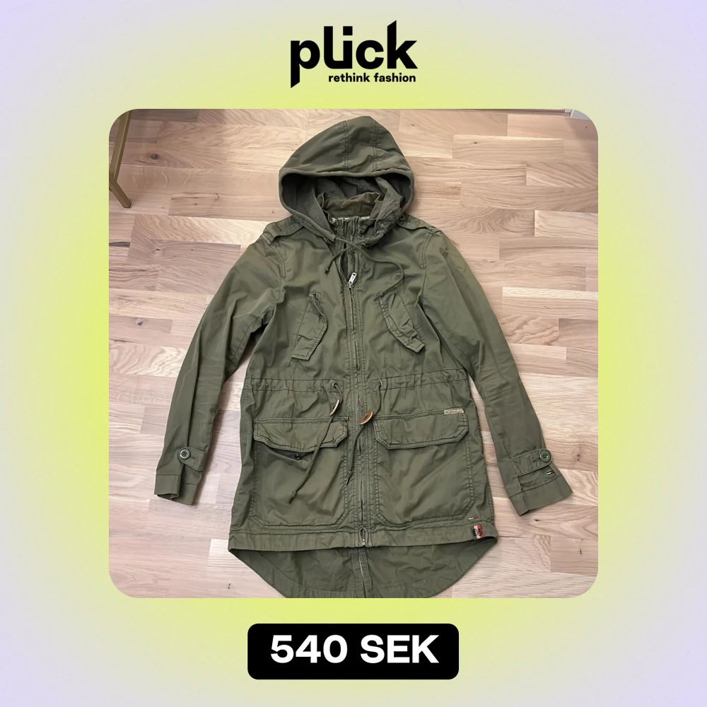 Säljer en snygg grön parkajacka från Hilfiger Denim i storlek XS. Jackan har en praktisk huva och flera fickor med knappar. Perfekt för höst och vår, med en dragkedja framtill och justerbara ärmslut. Superbra skick och redo för nya äventyr! 🍂