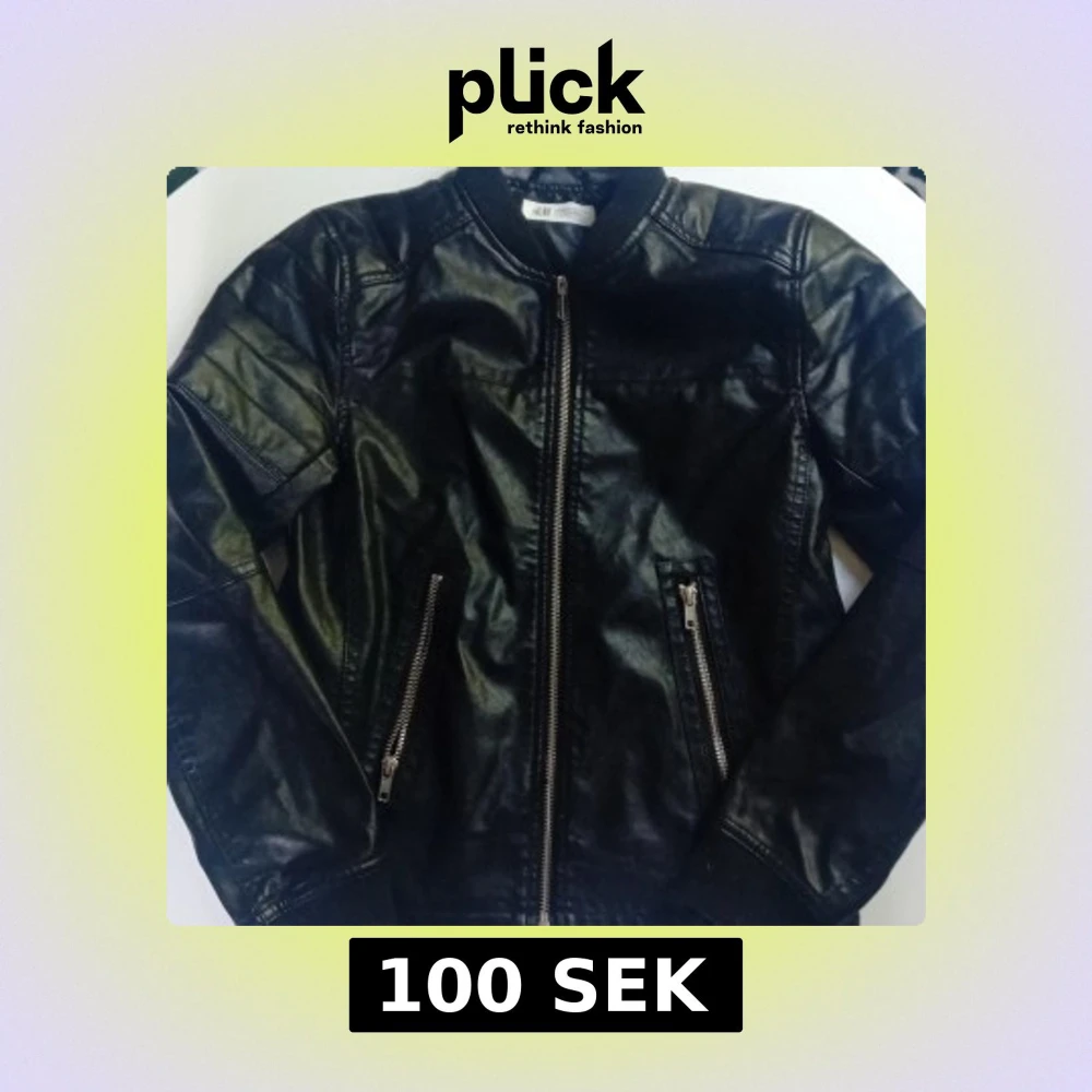 Säljer en svart skinnjacka från H&M med dragkedja framtill och två snedställda fickor med dragkedjor. Säljer den för 100 kr för jag haringen använing för den.