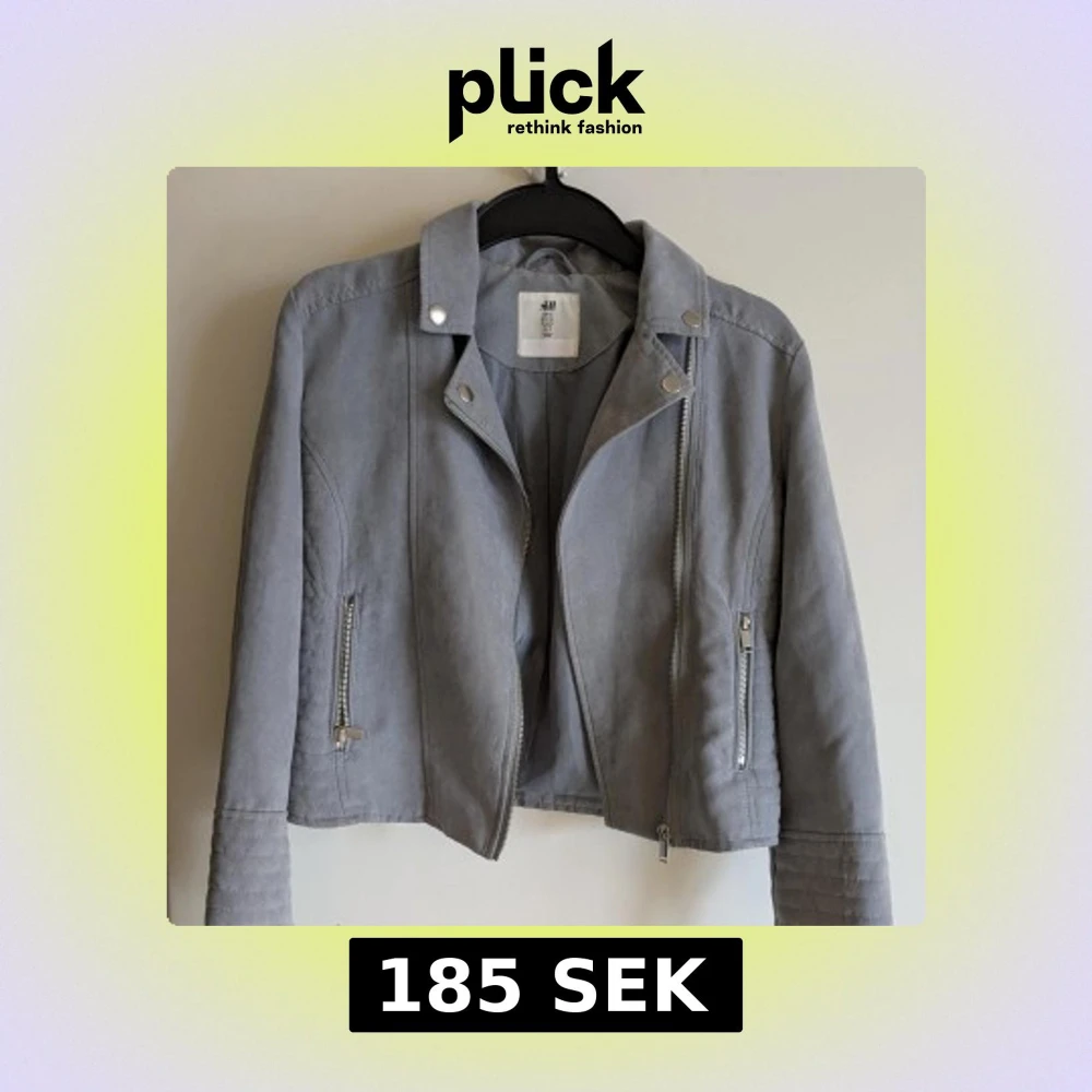 Snygg grå jacka från H&M med dragkedja och stilrena detaljer. Jackan har en klassisk bikerstil med långa ärmar och silverfärgade knappar. Perfekt för en cool och avslappnad look. 100% Polyester. Tvättas i 40 grader. Min dotters namn är tillfälligt över klistrat med ett vitt klistermärke. Jag kommer att stryka över hennes namn med svart textil penna när jackan säljs.