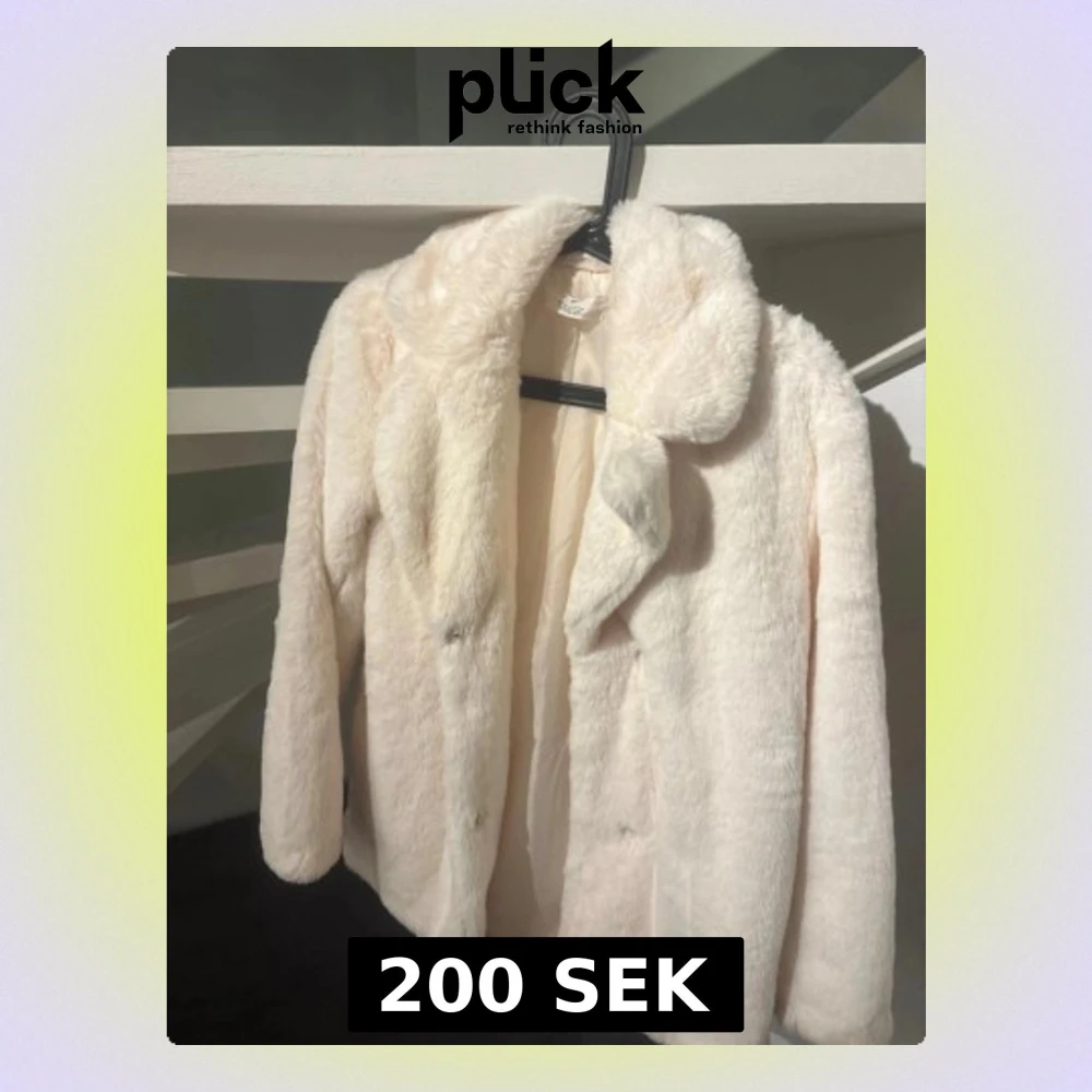 Säljer en fluffig och mjuk vit pälsjacka från H&M med bred krage och långa ärmar. Jackan har en clean look och stängs med dolda knappar framtill. Perfekt för dig som vill ha en cozy och stylish vibe under kyliga dagar.