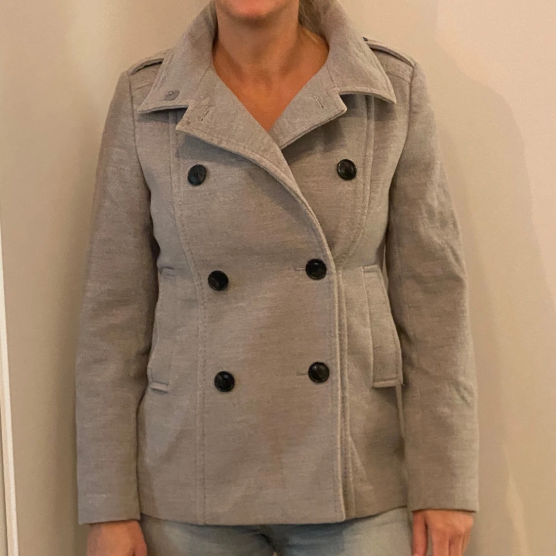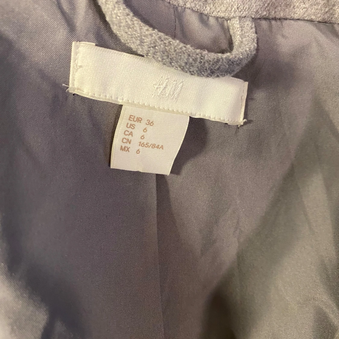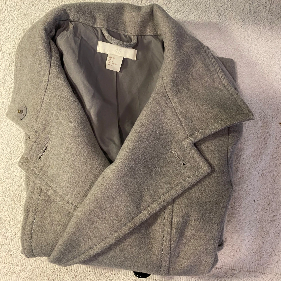 Säljer en stilren grå kappa från H&M i storlek 36. Den har en klassisk dubbelknäppning med svarta knappar och en snygg krage. Perfekt för höst och vår, och ger en elegant touch till vilken outfit som helst. Jackan är i bra skick och redo för nya äventyr!