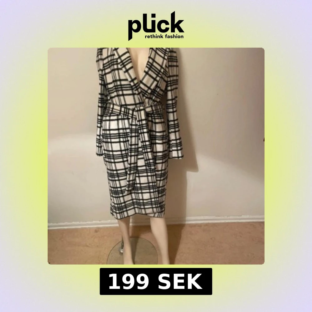 Snygg lång kappa i svartvitt rutigt mönster med bälte i midjan och djupa fickor. Jackan har klassisk krage, omlottstängning och långa ärmar. Perfekt för dig som vill sticka ut med en trendig och stilren look.