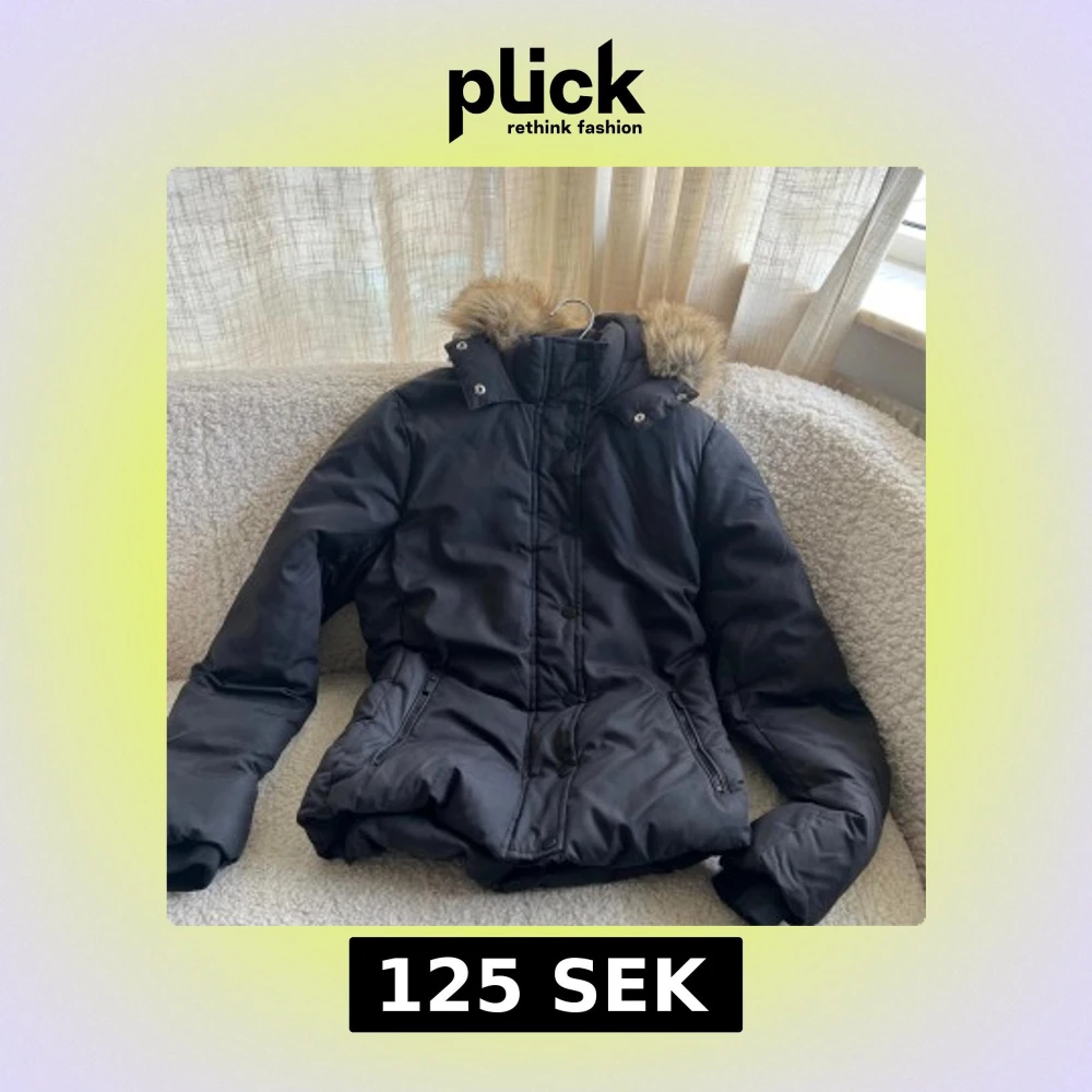 Säljer en svart pufferjacka från H&M i storlek 36. Jackan har huva med fuskpäls, dragkedja och knappar framtill samt fickor med dragkedja. Perfekt för kalla dagar och har en klassisk look med snygga detaljer på ärmen.