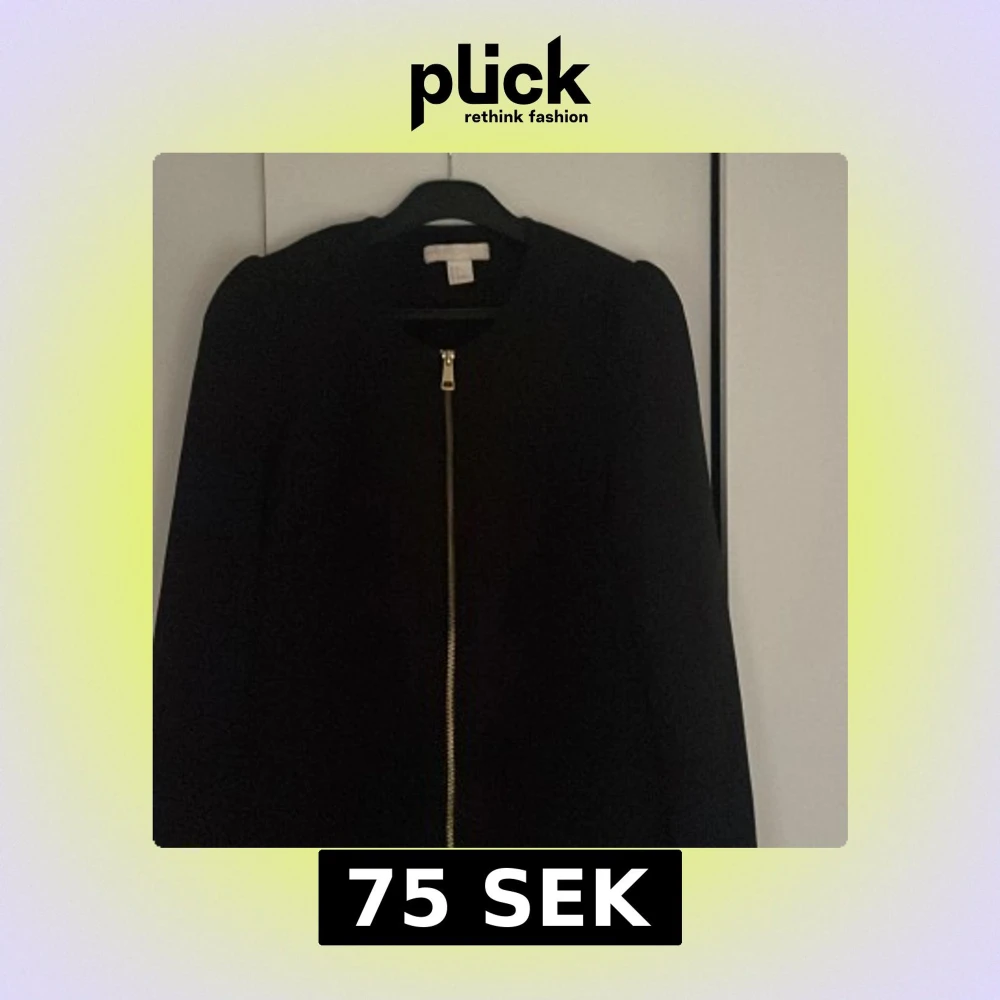 Stilren svart kappa från H&M i storlek 36. Jackan har en rak passform, rundad halsringning och en snygg guldig dragkedja framtill. Dekorativa puffiga axlar. Långärmad och enkel design som passar perfekt till höst och vår.