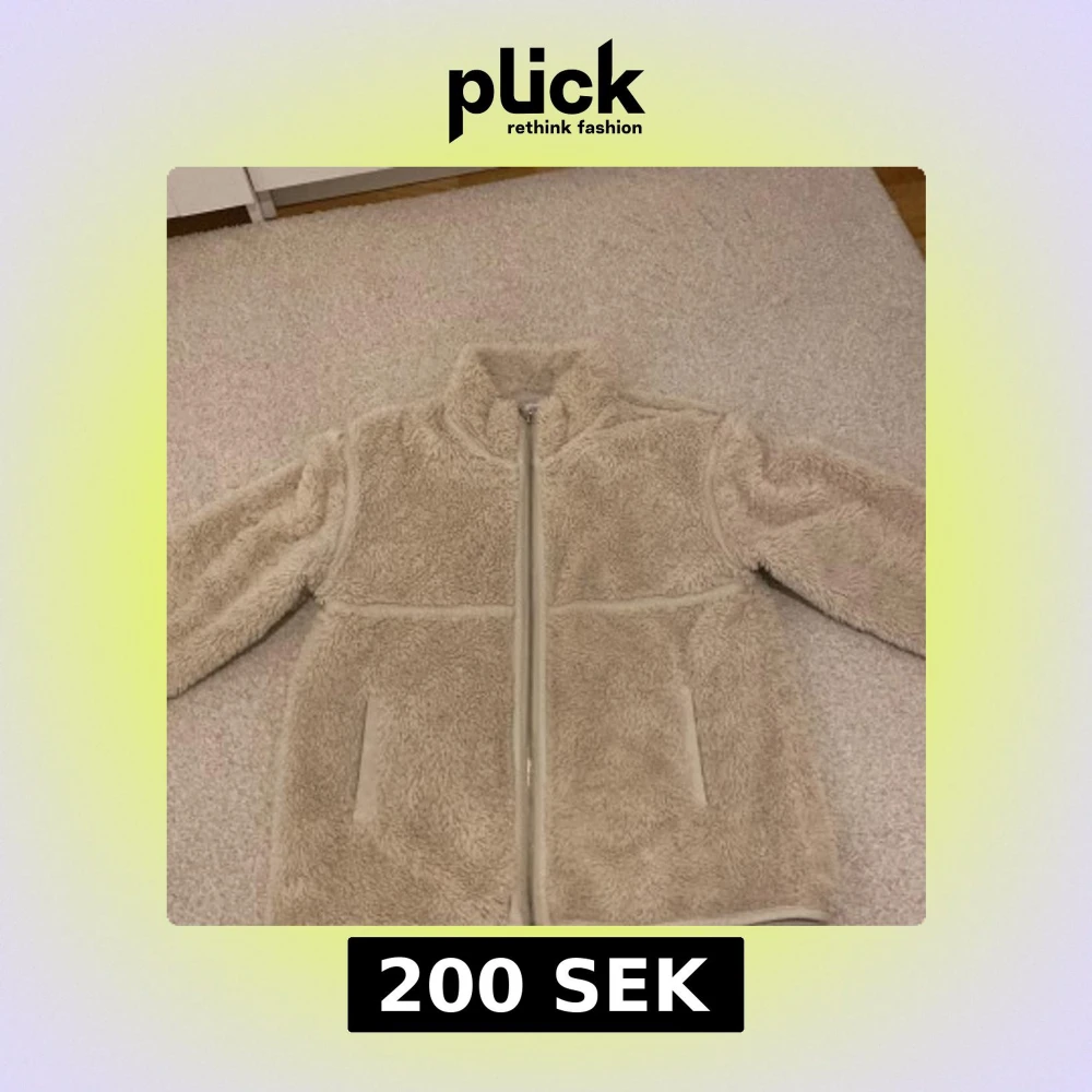 Mysig beige teddyjacka från H&M med dragkedja framtill. Perfekt för kyliga dagar med sin fluffiga och varma design. Jackan har långa ärmar och två praktiska fickor. Stor i storleken