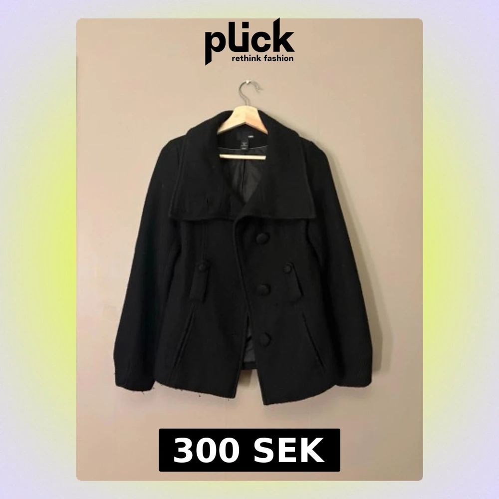Från H&M med bred krage och dubbelknäppning. Jackan har två fickor framtill och är tillverkad i ett tjockt, strukturerat material som känns riktigt cozy. Perfekt för dig som gillar klassisk stil med en modern twist.