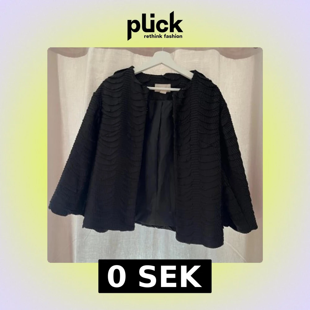 INTRESSEKOLL!! Säljer en svart kappa från H&M i storlek 38. Jackan har ett unikt strukturerat tyg med vågiga detaljer och är helfodrad. Den har en rak och lite lös passform, perfekt för dig som vill ha något stilrent men ändå speciellt.💗