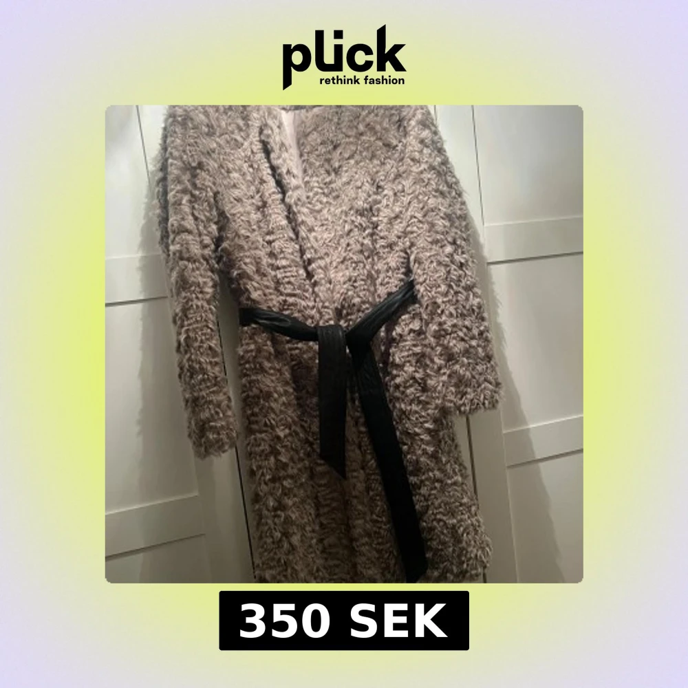 Säljer en fluffig beige pälsjacka från H&M i storlek 38. Jackan har lång ärm och ett svart bälte i midjan som ger en snygg siluett. Perfekt för dig som vill sticka ut med en trendig och mysig look.