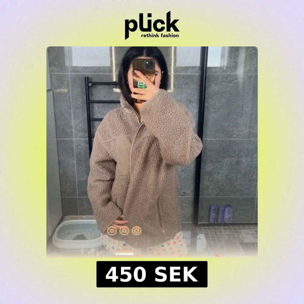 Mysig beige teddyjacka med hög krage och dragkedja framtill. Jackan har en cool bröstficka med dragkedja i matchande beige tyg och två sidofickor. Oversized passform som ger en chill vibe, perfekt för kalla dagar.