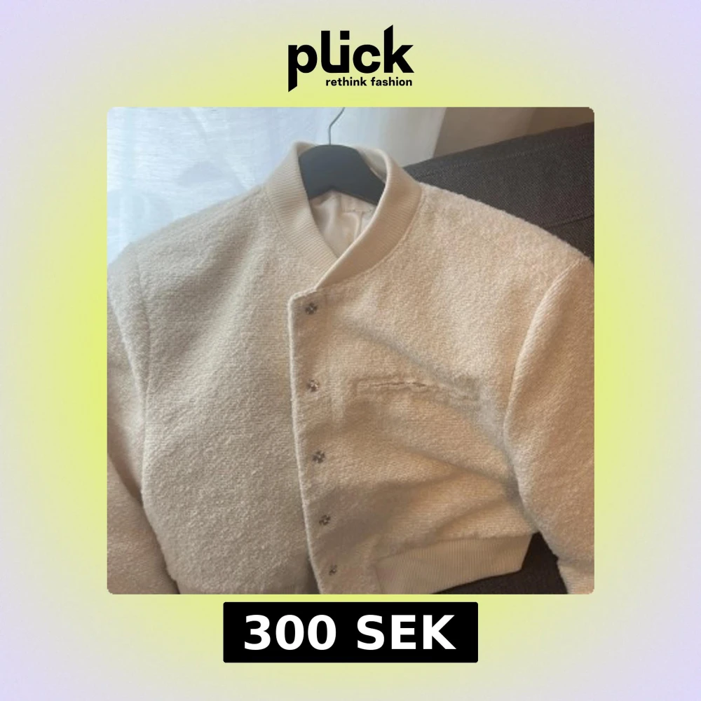Säljer en vit cropped bomberjacka från H&M med ribbade muddar och knappar framtill. Jackan har en mjuk, texturerad yta och en bröstficka. Perfekt vår jacka. Jackan köptes förra våren och använts 1 gång jackan är i storlek 40 men tycke den passar mer som M