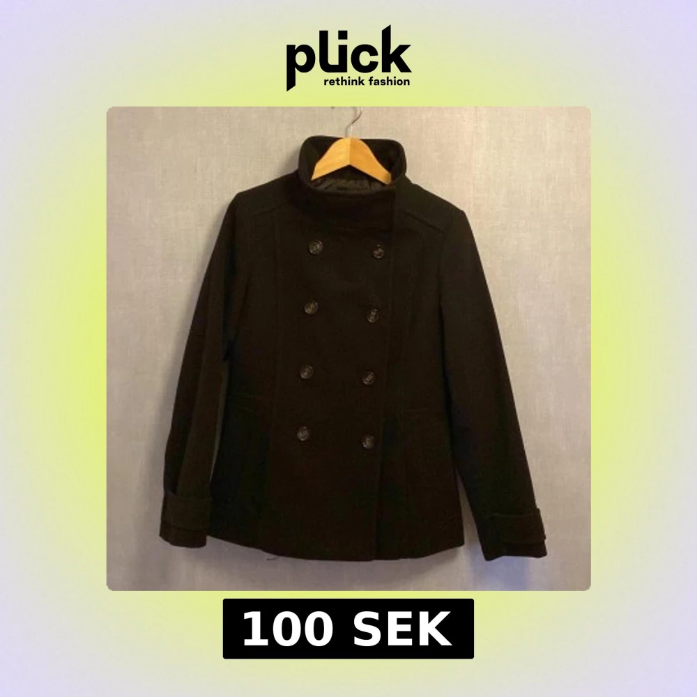 Stilren svart skepparkavaj från H&M i klassisk modell med dubbelknäppning och hög krage. Jackan har långa ärmar, två fickor framtill och snygga knappar. Perfekt för dig som gillar en tidlös look och vill hålla dig varm under kyliga dagar.