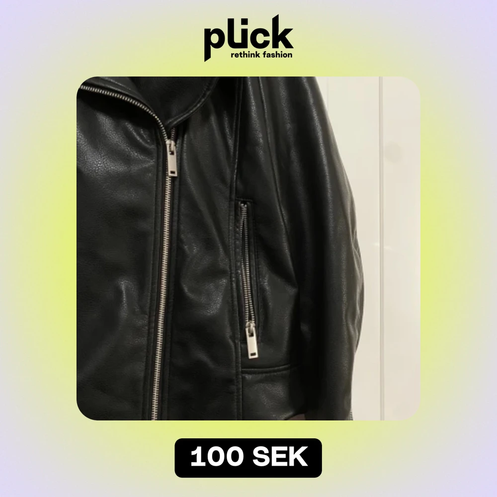 Svart skinnjacka i storlek (44). Jackan har två fickor på sidorna av jackan. Andvänts 2-3 gånger.