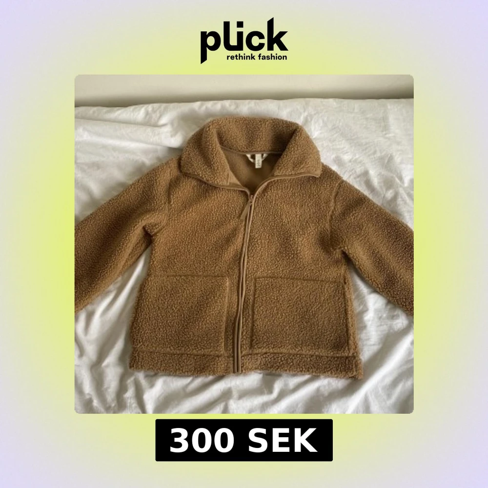 Mysig beige teddyjacka med dragkedja framtill och stora fickor. Jackan har en hög krage och långa ärmar för extra komfort. Ser brun ut på bilden, men jackan är beige (kolla andra bilden)