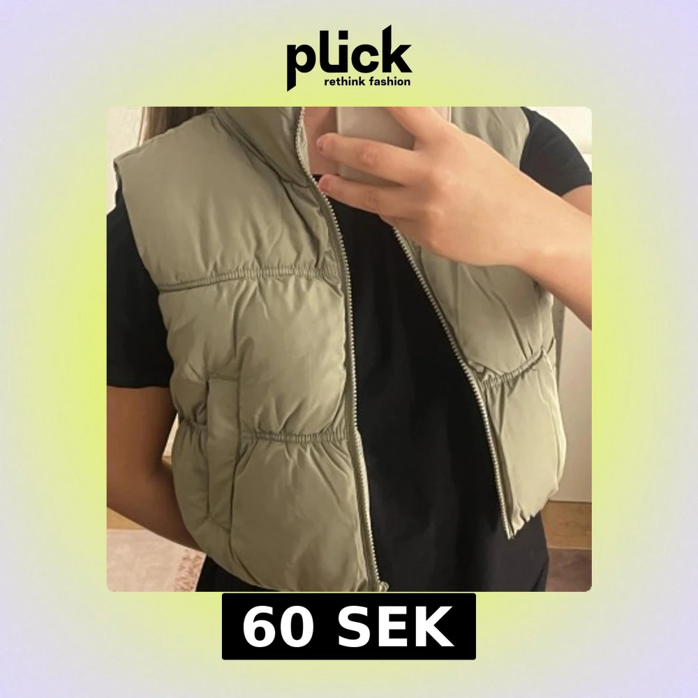 Säljer en beige dunväst från H&M med dragkedja framtill och två fickor. Västen är tillverkad av 100% återvunnen polyester och har en klassisk, vadderad design som passar perfekt till lager-på-lager-stil.