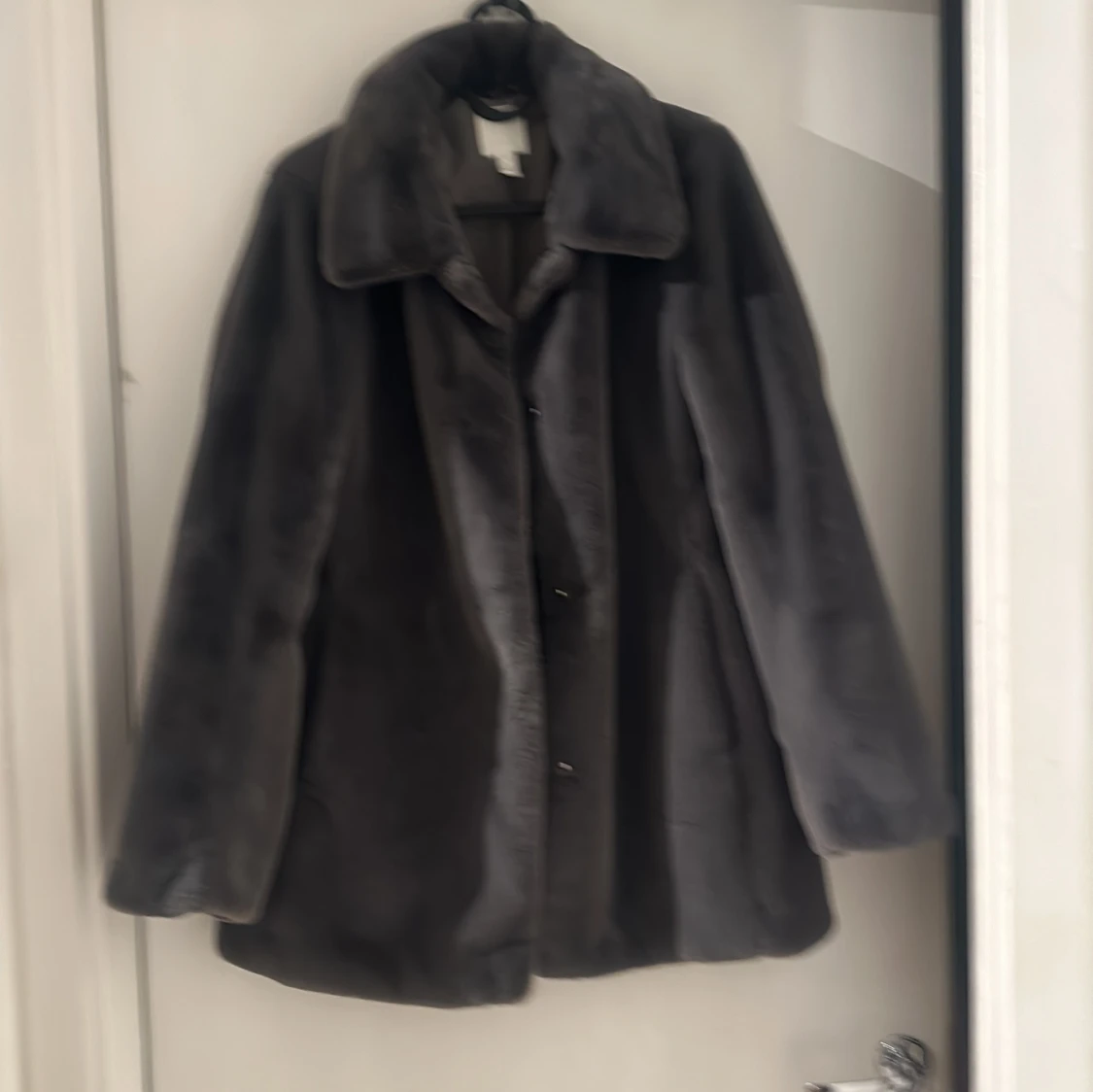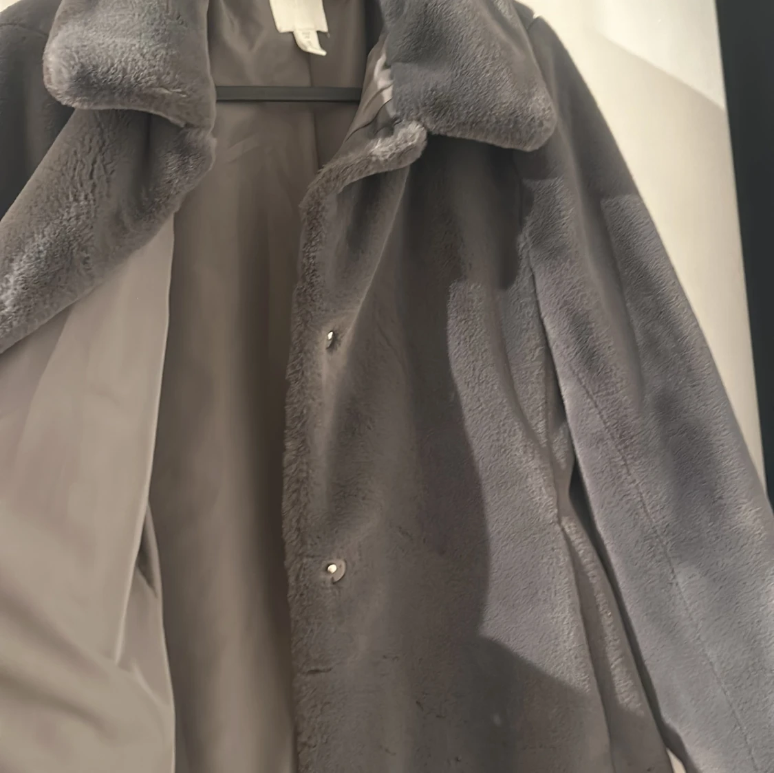 Säljer en supermjuk och stilren grå pälsjacka från H&M i storlek XS. Perfekt för kyliga höst- och vinterdagar. Jackan har en klassisk krage och knappar framtill. Den är i mycket bra skick och redo för nya äventyr! 🐻