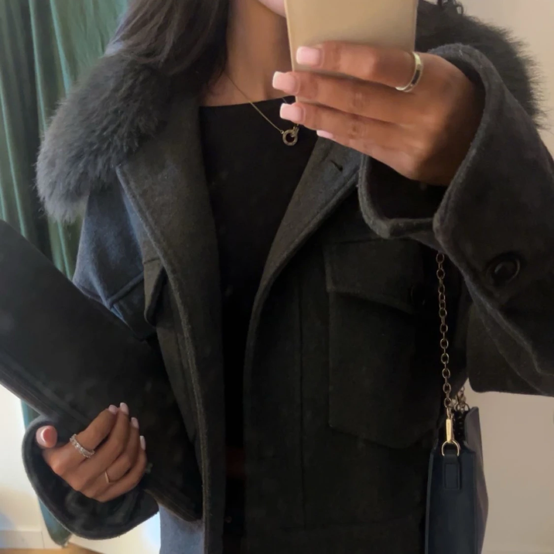 Snygg mörkgrå jacka. Jackan har flera stora fickor framtill, skriv för flera bilder eller frågor 💗