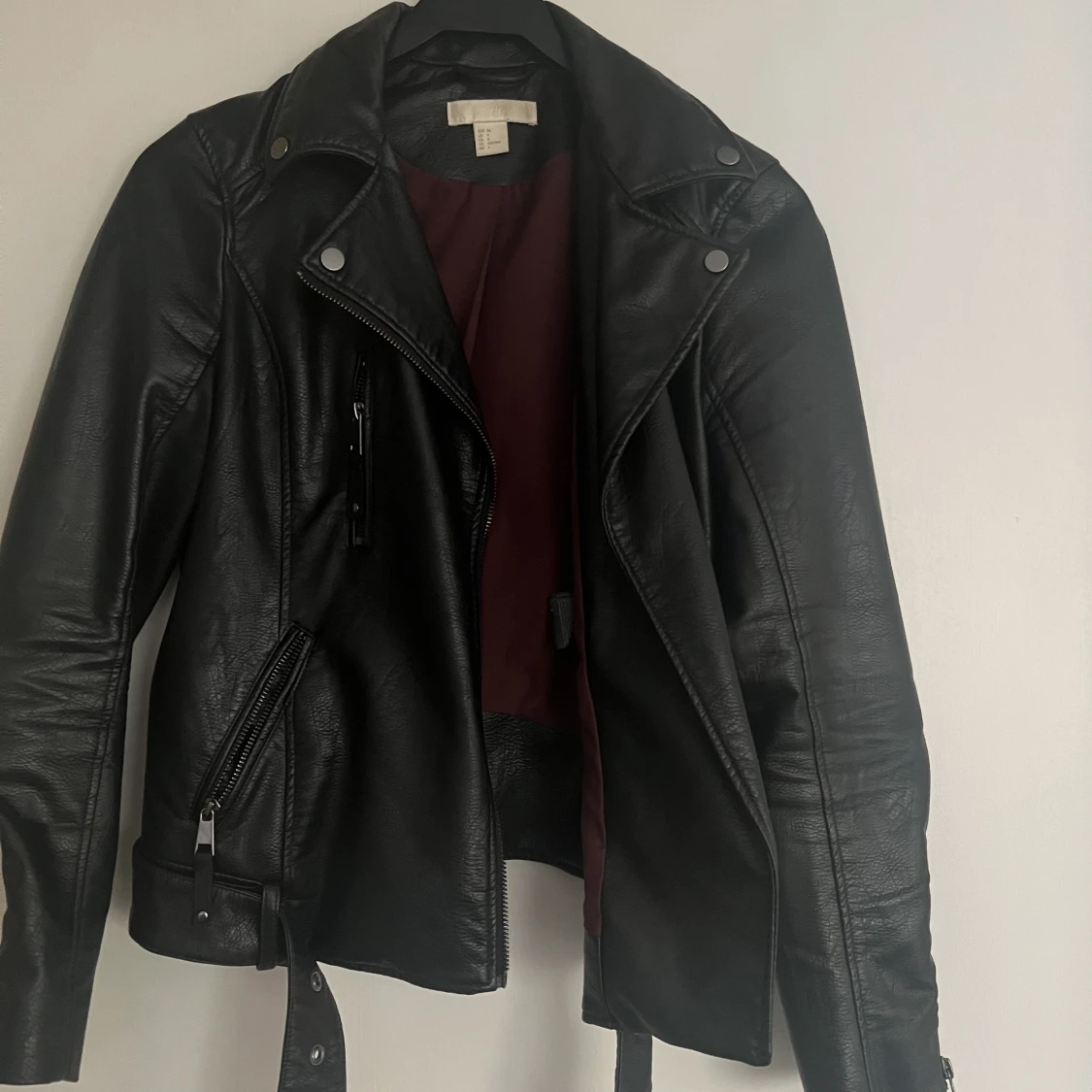 Skit snygg skinnjacka med skärp, från hm som aldrig kommer till användning längre. Använd ca 1,5 månad sammanlagt.