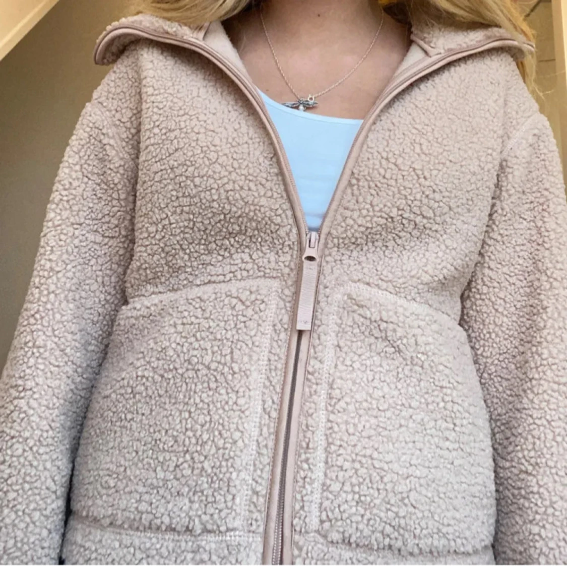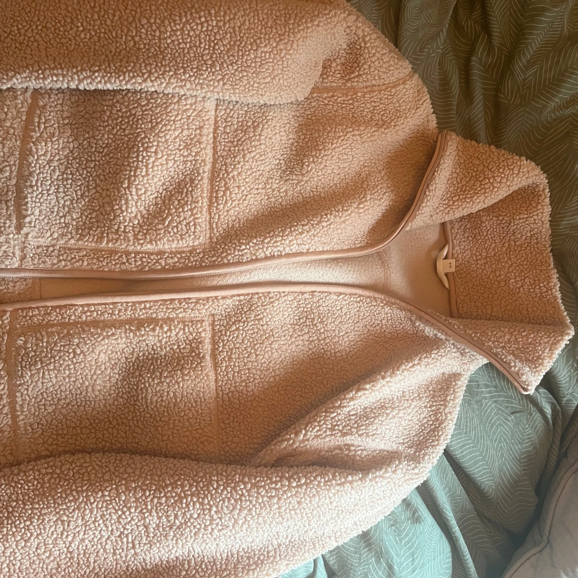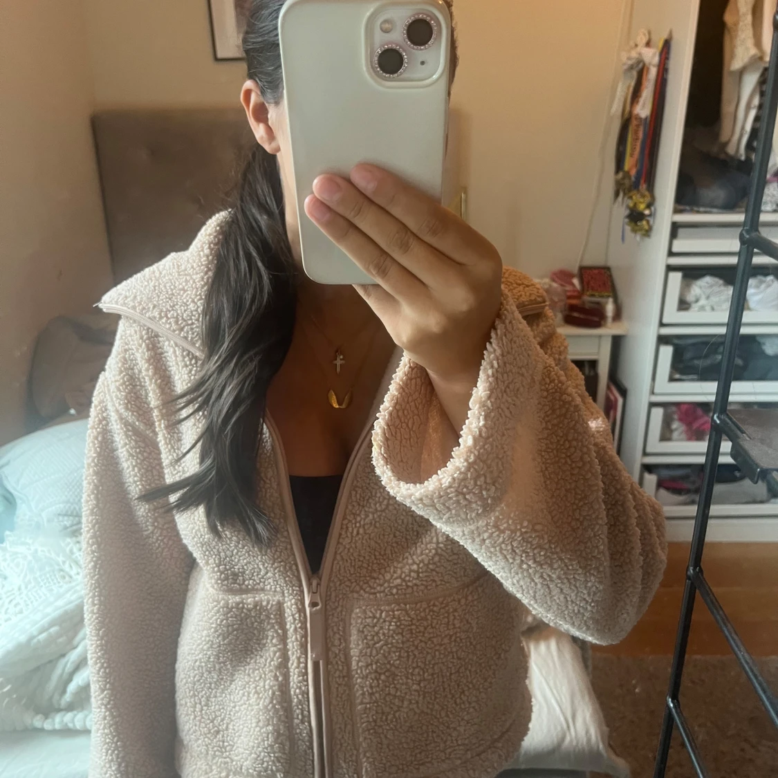 Mysig beige teddyjacka med dragkedja och stora fickor framtill. Perfekt för kyliga dagar med sin fluffiga och varma design. Jackan har en hög krage och långa ärmar för extra komfort. Pris kan diskuteras🥰🥰