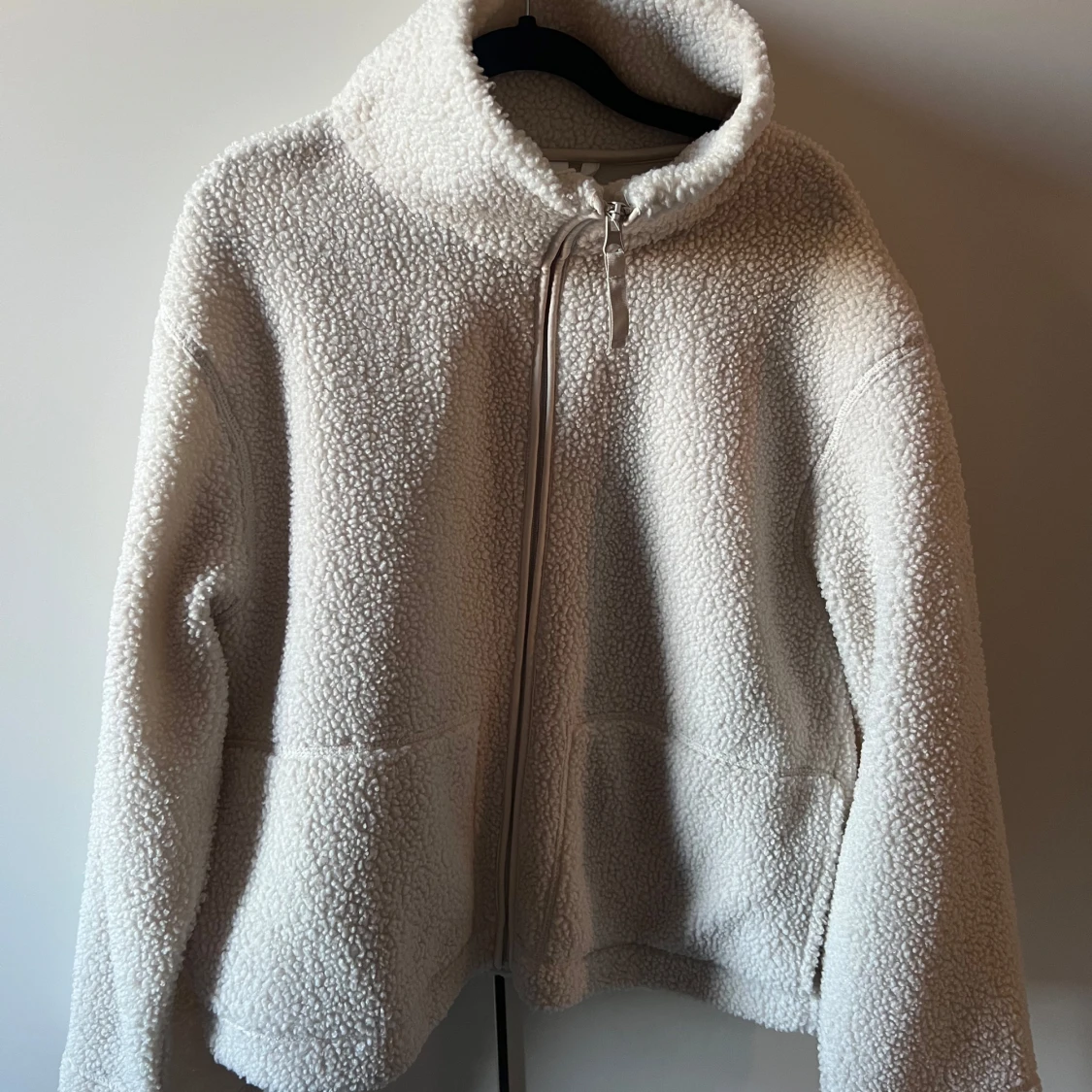 Mysig vit teddyjacka med dragkedja framtill. Superfint skick och inte använd mycket alls! 🩷Storlek L men funkar på de flesta om man vill ha en liten oversized look.