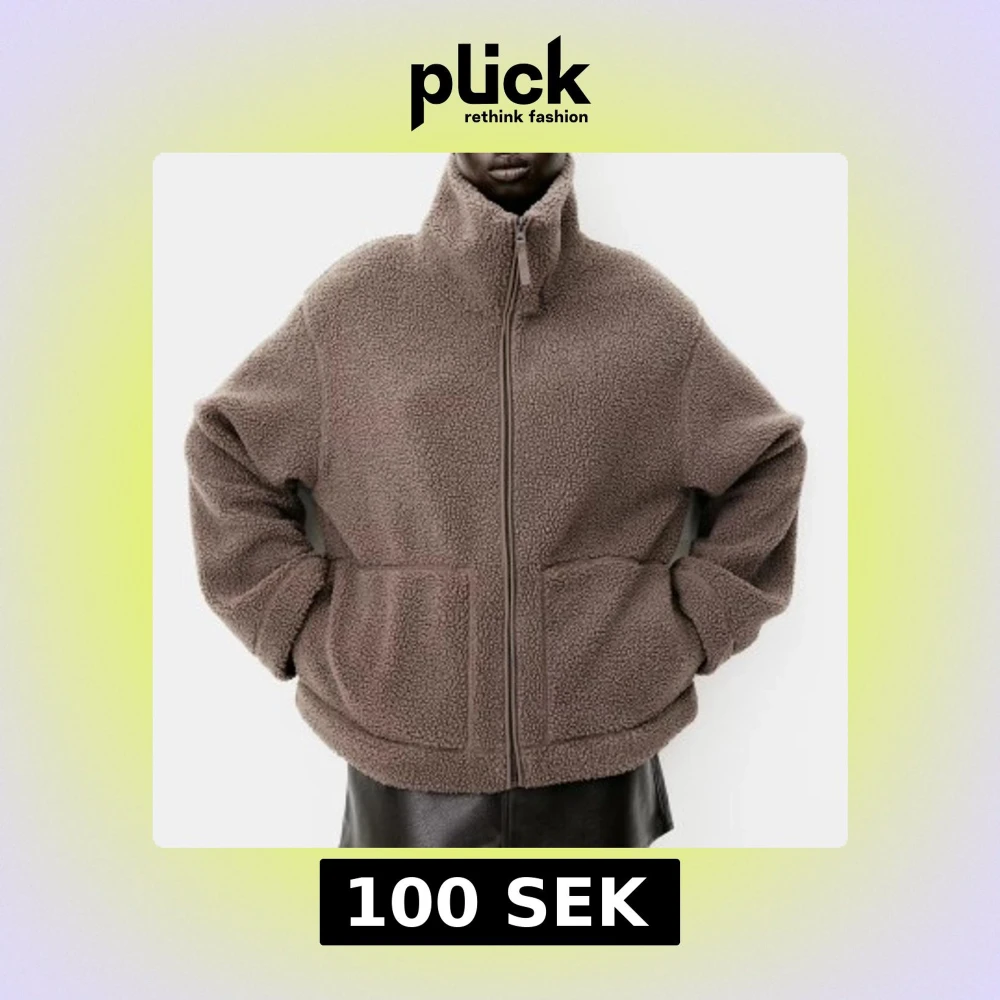 Mysig brun teddyjacka med hög krage och dragkedja framtill. Jackan har två praktiska fickor och en avslappnad passform.