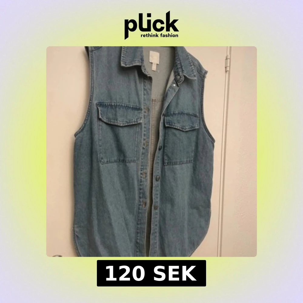 Ej använd. Snygg jeansväst från H&M i en klassisk blå denimfärg. Västen har knappar framtill och två bröstfickor med lock. Perfekt för en avslappnad stil.