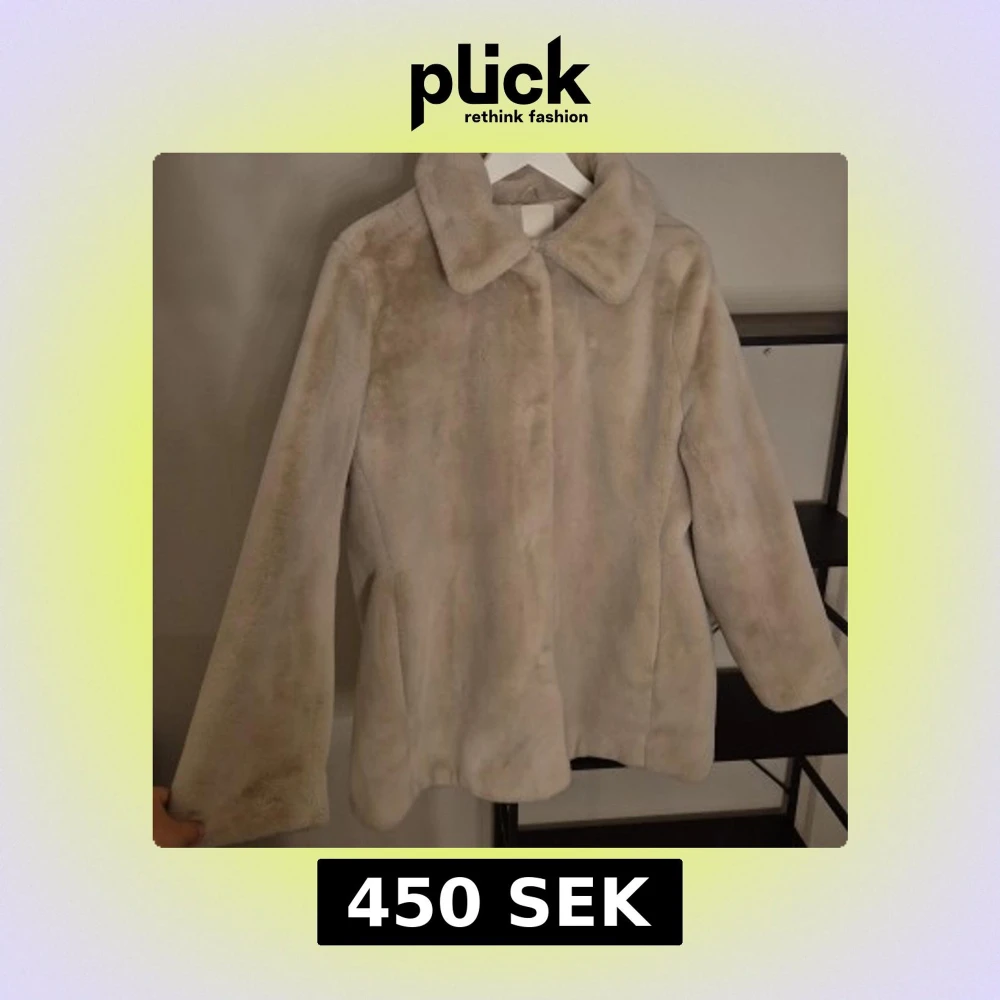 Mysig beige pälsjacka med klassisk krage och knäppning framtill. Oversized look. Jackan har en rak passform och är helfodrad för extra komfort. Perfekt för dig som vill ha en stilren och fluffig look under kyliga dagar.