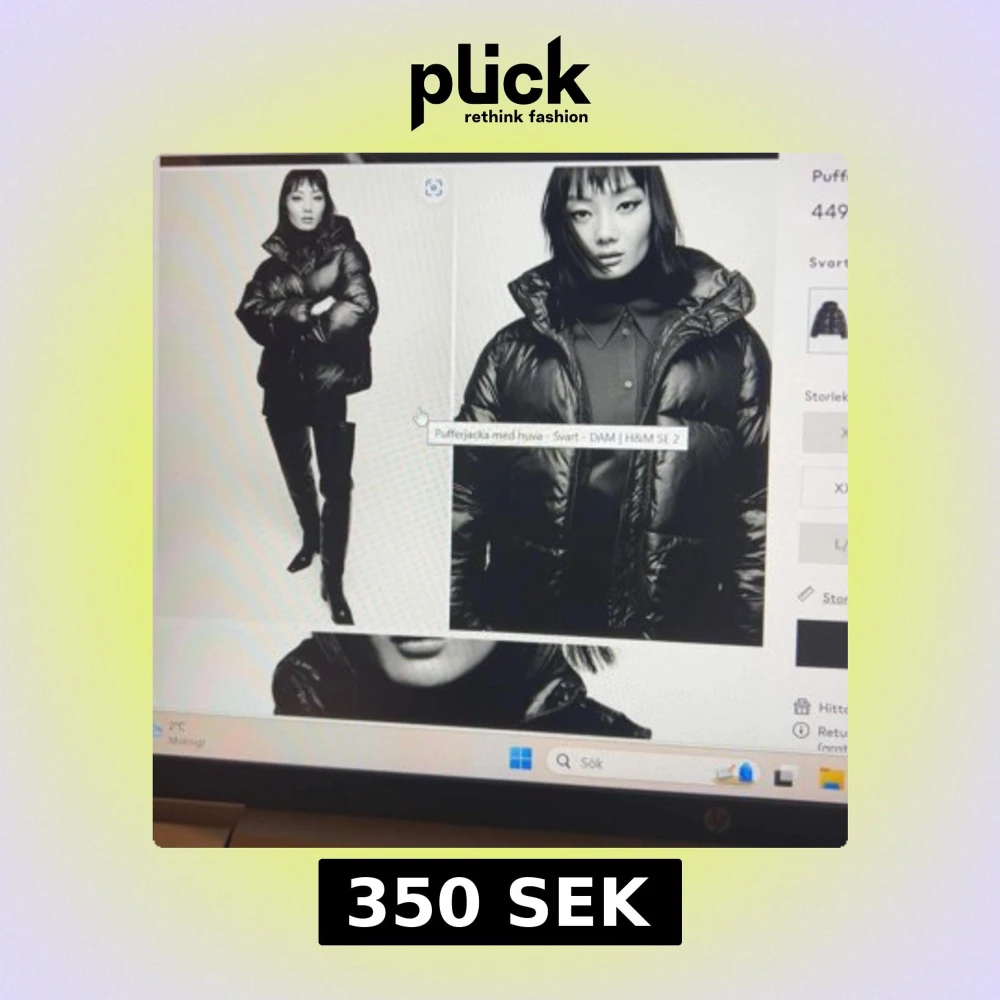 Svart pufferjacka från H&M i storlek M. Jackan har slutat säljas och är i ett helt okej skick med smink märke (kan ta bort) och ett litet hål på armen💕