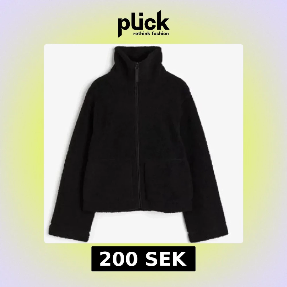 Mysig svart teddyjacka med hög krage och hel dragkedja framtill. Jackan har två stora fickor och är tillverkad i mjukt fleece-material. Perfekt för kyliga dagar och har en enkel, stilren look som passar till det mesta. Storleken passar S och M med då den är ganska liten i storleken.