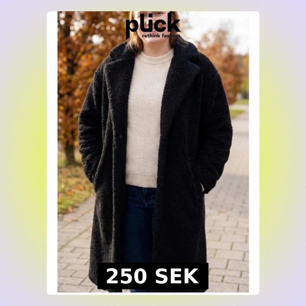 Mysig svart teddykappa från H&M i lång modell med krage och knappar framtill. Jackan har två sidofickor och är tillverkad i fluffigt teddy-material som håller dig varm. Perfekt för dig som gillar oversized och chill vibe.