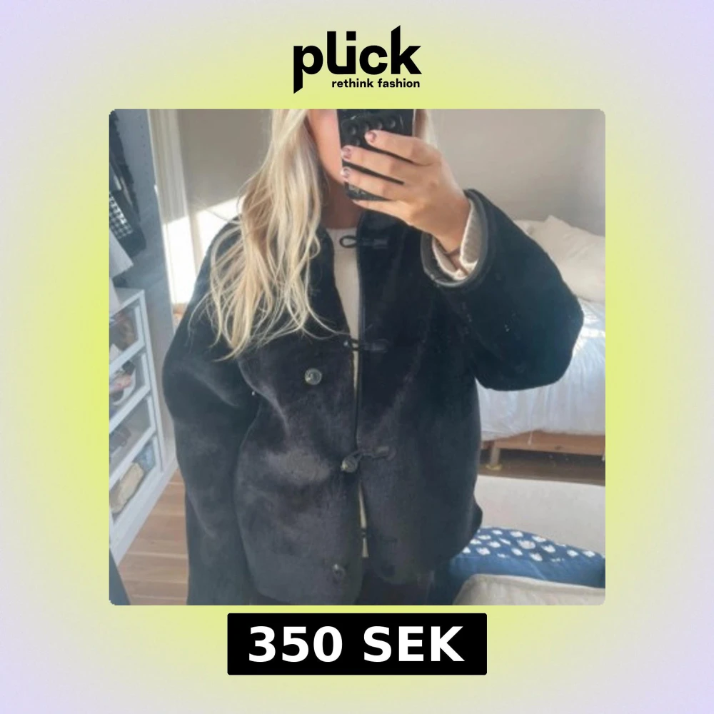 Säljer en svart pälsjacka med cool snörning och knappar framtill. Jackan har en rak och loose passform med långärmade ärmar och mjukt pälsmaterial som ger en lyxig vibe. Perfekt för dig som vill ha en statement piece i garderoben.